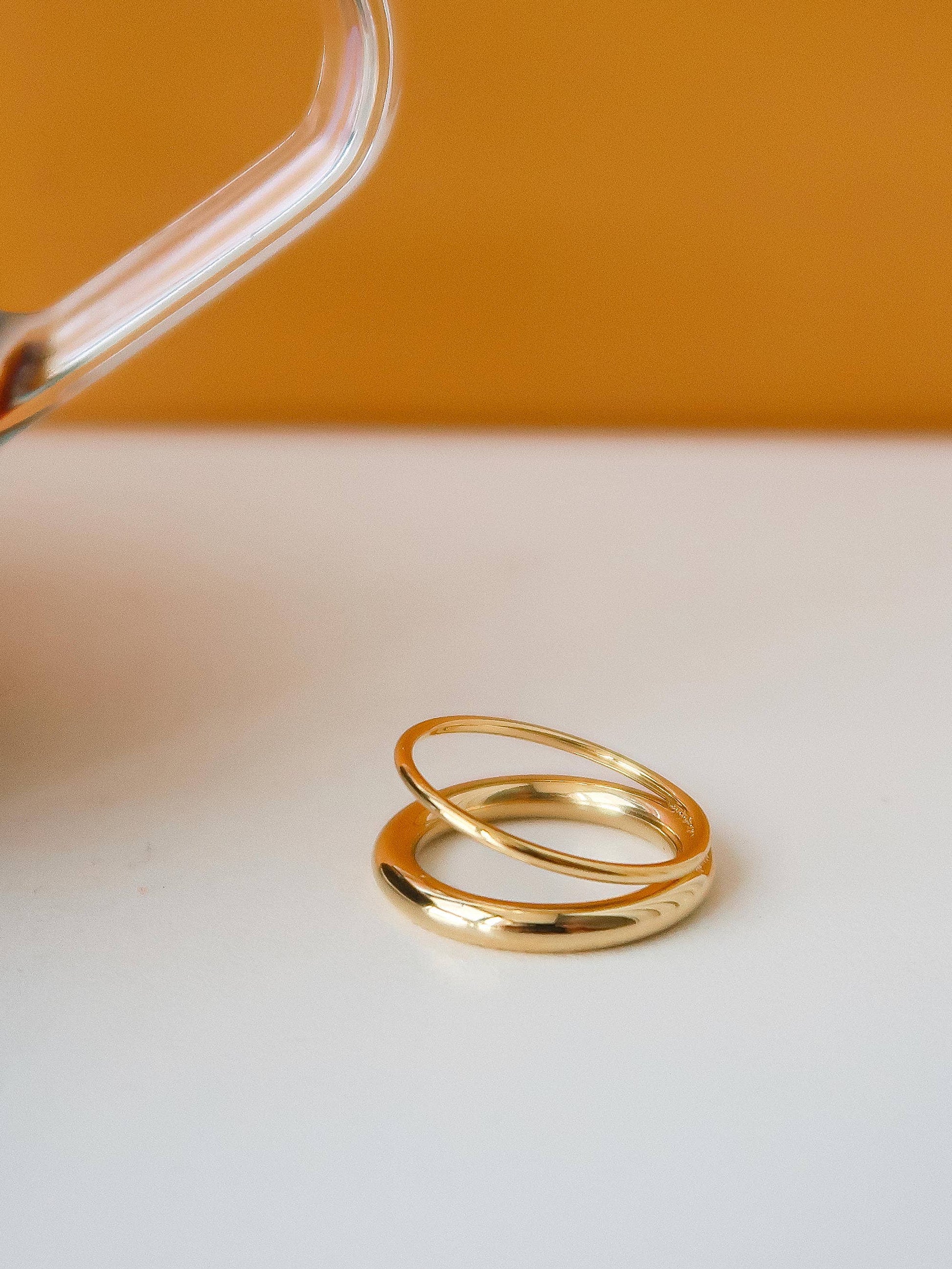 18K Gold Non-Tarnish Classic Double Band Ring 18K Gold Plating Stainless Steel